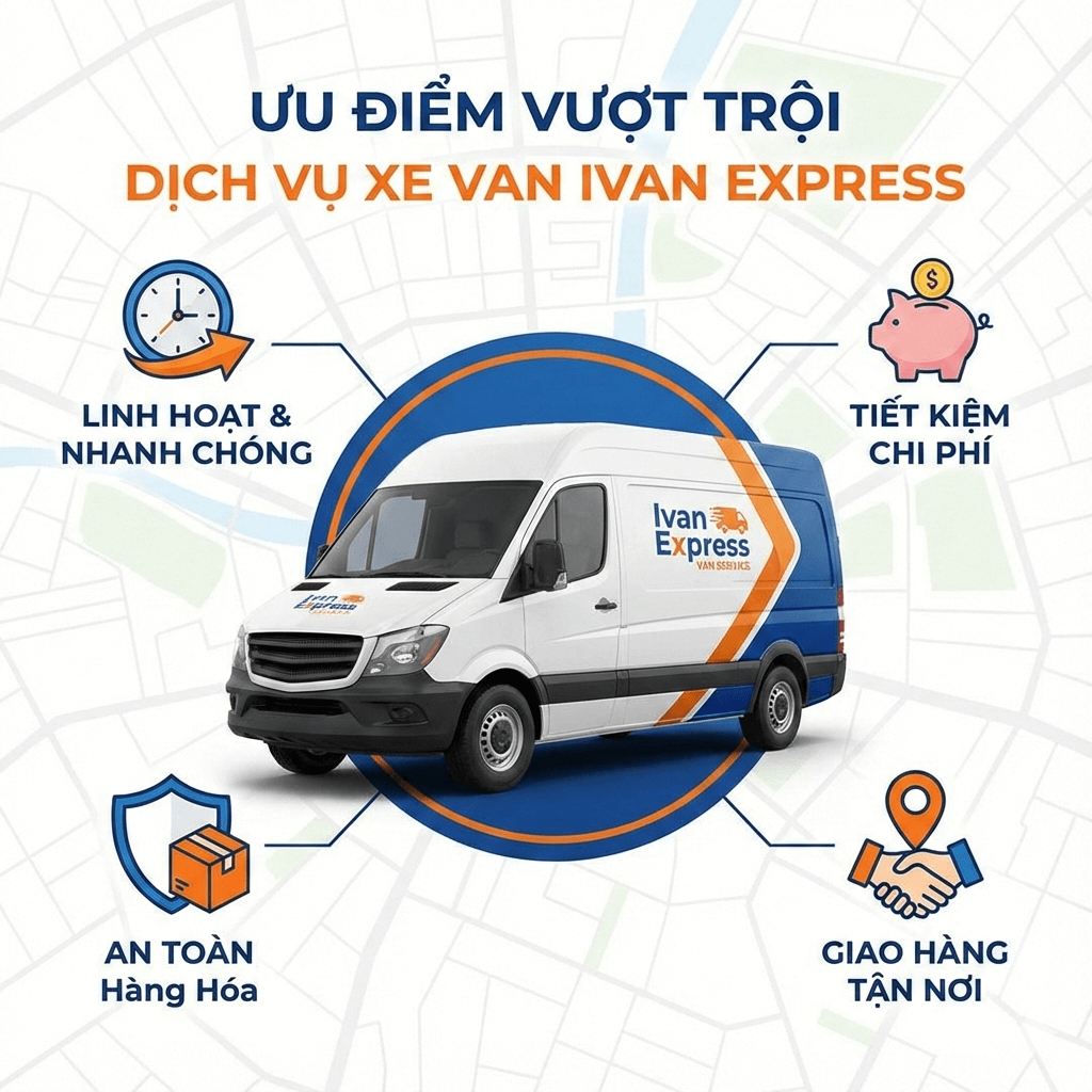 - Với đội ngũ nhân sự giàu kinh nghiệm, Ivan Express cam kết mang đến dịch vụ vận chuyển bằng xe van chuyên nghiệp, đảm bảo làm hài lòng quý khách hàng về cả chất lượng dịch vụ và hiệu quả chi phí.